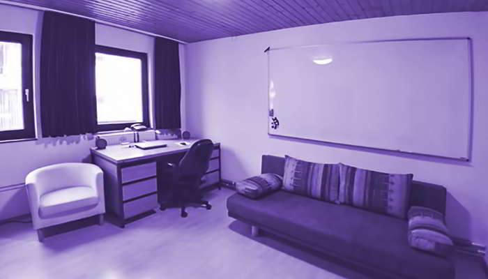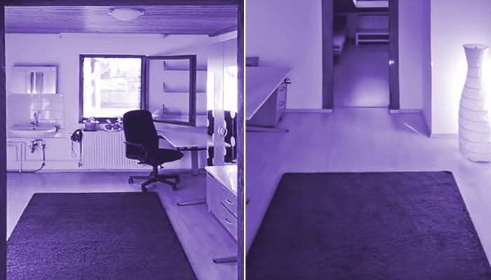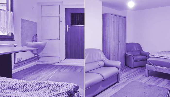 Ähnlich wie Zimmer 3 besteht Zimmer 6 aus einem Vorder- und Hinterzimmer, wodurch eine bessere Raumaufteilung möglich ist. Dieses Zimmer ist mit 23,5m2 das größte Zimmer im „Binger Bleistift“, befindet sich im 3.OG und damit in unmittelbarer Nähe zum Badezimmer.