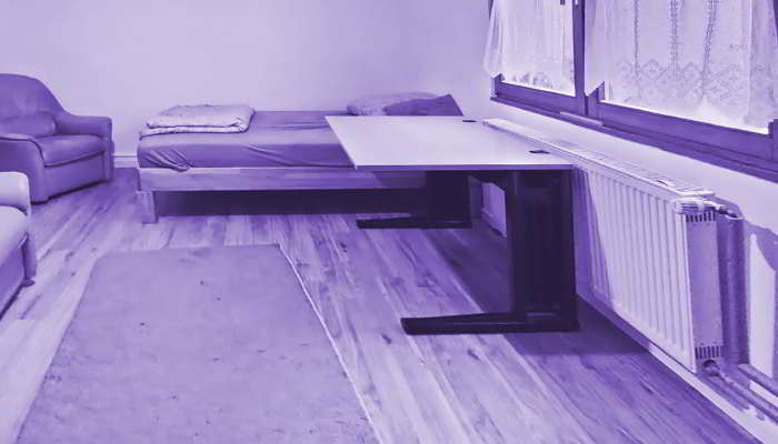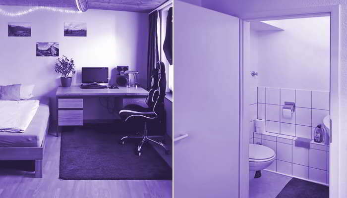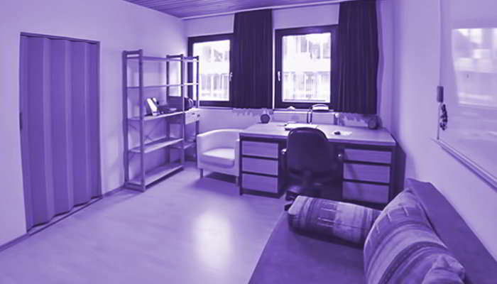Zimmer 4 ist mit 11m2 das kleinste Zimmer im „Binger Bleistift“, dennoch ist alles vorhanden was man als Student in einem WG-Zimmer benötigt.